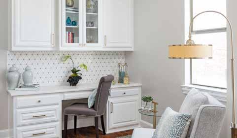 In addition, Trisha recently remodeled a client’s din ing room into a home office. She repurposed the space by enclosing the room using a barn door, refurnished it, and installed better lighting. She was able to keep the nat ural light but create privacy as well. She says the remodel is “one of my favorites and very special.”