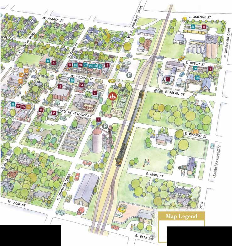 DOWNTOWN ELINA Eat & Drink 1. Bobcat Kuntry 2. Bongo Beaux 's Bourre Palace & Cajun Kitchen 3. Car mela Winery 4. Hairy Gorilla Snowballs 5. Hey Sugar Candy Store 6. Jimbo's Pizza 7. Little Wooden Penguin 8. Lucy's on the Square 9. Mangiamo Italian Market & Deli - Coming Soon! 10. Papa Gallo's Mexican Restaurant 11. Rollertown Brewery 12. Summer Moon Coffee 13. Terry's Donuts 14. Tender Smokehouse 15. Toasted Walnut Table & Mar ket 16. Valley Vines Tasting Room Shopping & Entertainment )17. Annie Jack / 18. Buff City Soap 19. Celina Flowers & Gifts 20. Celina Heritage Association Museum 21. Grace Bridge Resale 22. Honeysuckle Rose Boutique 23. Terramania 24. The Greens at Little Wooden Penguin 25. The Twisted Trail 26. Thrown Axe Co. 27. Two29 on the Square Event Venue 28. William Williams Rare Jewels 29. Willow House Boutique