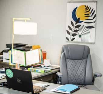 Almost a decade later, Humble Home Designs is more than the name suggests. Trisha also decorates corporate offices and has partnered with Puente Construction on jobs “literally from beginning to end”. If the name sounds familiar, it’s because Puente Construction is owned by Trisha’s husband, Daniel. Trisha says it is a blessing to work together with Daniel on joint ventures. Her projects include the offices for Sign Gypsies where the company hired Trisha to decorate their new headquarters. She enjoyed integrating a mid-century modern theme into the overall motif, especially the light ing. She created a space with industrial accents, modern art, and lamps that made the office feel warm and invit ing. According to Trisha, “the office stood out from all others, not sterile nor boring at all.”