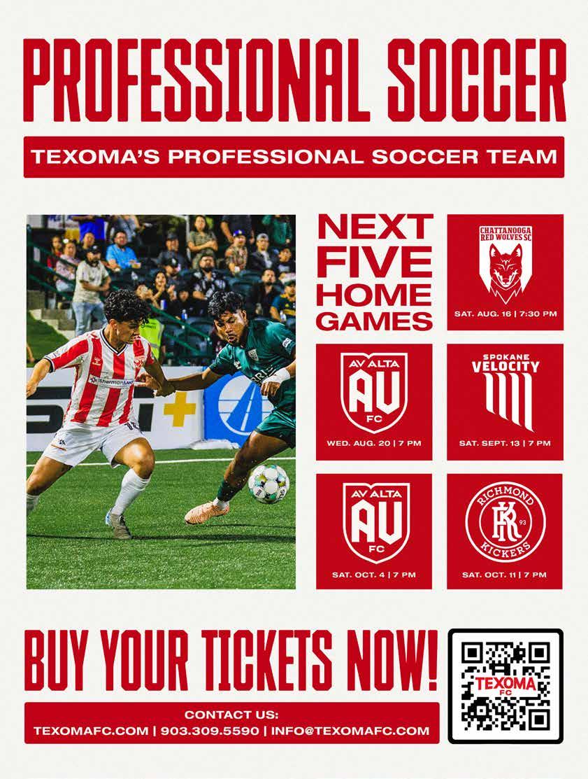 Come out to the historic Bearcat Stadium for Texoma FC's inaugural season. Texoma FC is the area's first professional soccer team and plays in the USL League One. Bring out the whole family and watch as Texoma FC takes on AV Alta FC on Wednesday, August 20! Learn more and purchase tickets at TexomaFC.com