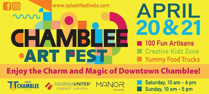Peachtree Road between American Way and Miller Drive will be blocked off from 10 a.m. to 6 p.m., April 20, and from 10 a.m. to 5 p.m., April 21, for the Chamblee Art Fest. Browse unique items created by more than 100 artisans including paintings, jewelry, photography, folk art, and more. For information visit splashartfestivals.com