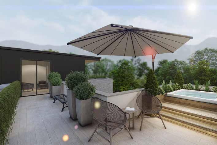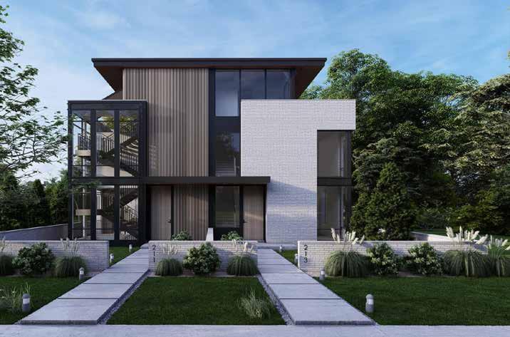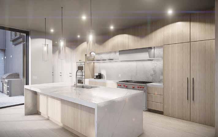 This connection to the outdoors is embodied throughout the homes’ designs, as floorto-ceiling walls allow for unobstructed views and invite in abundant sunlight. Large bi-fold doors on the main level—connecting to the patio and courtyard—and third floor help residents naturally maximize the volume of their living spaces.