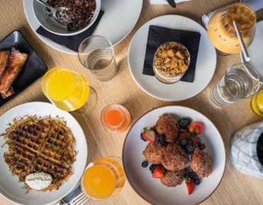 With loads of brunch offerings on the menu—we’re talking everything from crêpe Suzette with citrus marmalade and mascarpone Chantilly cream to classic steak and eggs with bearnaise aioli and peppercorn sauce to a roasted pork belly benedict in brioche—it’s