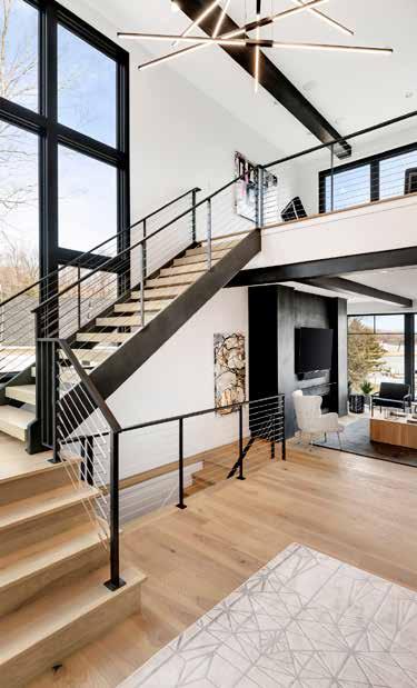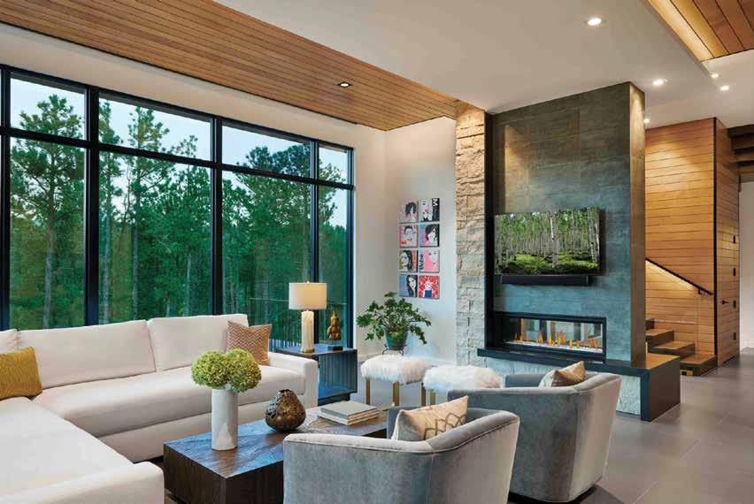 Even with their elevated luxury and openness to their natural surroundings, the homes of North Pointe Ten still retain a cozy, private quality. The welcoming front brick entries include two modern gasfired lanterns or torches ready to greet occupants and usher them into their abode.