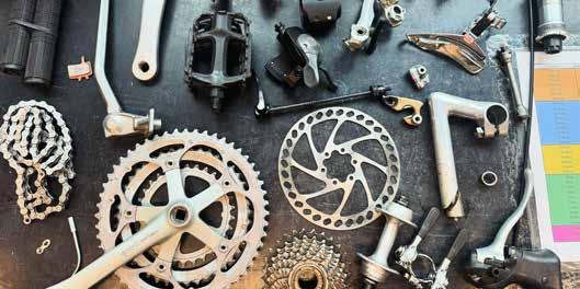 repaired when possible. If the bike is beyond repair, they’ll reuse working bike parts and responsibly recycle what is no longer usable. “In 2023, we diverted 21,000 lbs of unusable scrap metal recycled from the landfill and repurposed approximately three times as much (using salvaged parts to repair and refurbish our customer’s bikes), diverting a total of 57,725lbs of bikes and bike parts from going in the trash,” shares Abby.