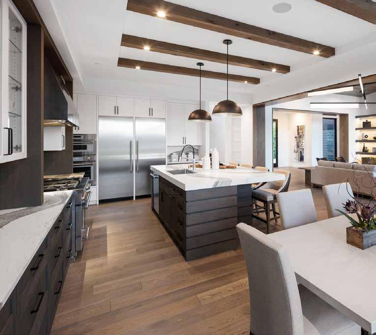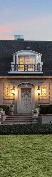 “I’d describe my personal style as neoclassic with a French twist,” Abigail says. “Every detail was considered to breathe new life into the home.” She designed the residence with living and hosting in mind, using inviting materials like natural stone and Nero Marquina marble; adding a solarium, wine closet and full bar; and maintaining original details such as the parlor fireplace, doorknobs and the sturdy oak front door. The home is punctuated with pops of rich color, like Behr’s “Frosted Jade” in a hall bath and “Shipwreck” in the butler’s pantry, while a Jonathan Adler chandelier and other sculptural light fixtures add a hint of sparkle to angular spaces.