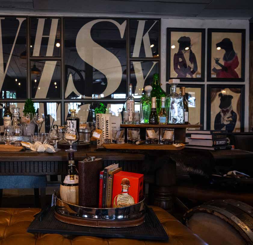 The always-changing front steps of the store, painted seasonally with plaids and currently showcasing a hand-painted cheetah pattern, welcome shoppers into the 4,700-square-foot, multi-space store and design studio with a cozy stone fireplace, rooms filled with sofas, tables, Libeco Belgian linens, beautiful