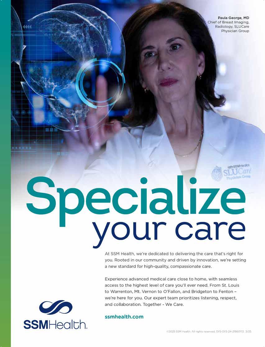 This month, our community shines with stories of generosity, inspiration, and impact. Cardinals baseball legend Adam Wainwright takes the stage with Big League Impact, using his platform to change lives beyond the ballpark. World Pediatric Project unites St. Louis with the global mission of delivering life-saving pediatric medicine. And a special philanthropic evening with Pro Football Hall of Famer Terry Bradshaw and the dedicated supporters of the St. Louis Men’s Group Against Cancer reminds us how powerful it is when we come together to raise funds, advance treatments, and spur prevention efforts. Just a few of the beautiful features in this issue highlight how giving back transforms lives.