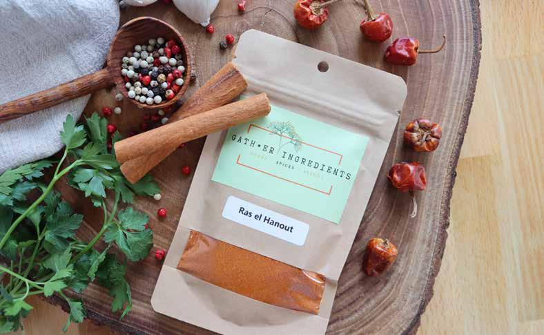 Gather Food Studios Spice Shop was officially established in 2021 after about four years of keep ing spices in-house to create the blends necessary for their classes. After a while, they started getting requests for their spice blends, so students wouldn’t have to spend $40 on multiple jars of spices to create a blend they would use once or twice. As students of Gather Food Studios are able to take recipes home with them, they had the ability to re-create these dishes, but sourcing the spices was tricky.