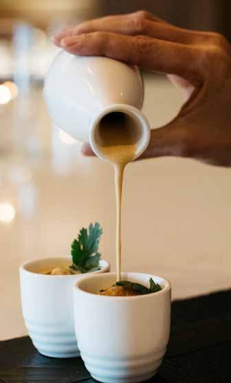 As we approach the big, beautiful doors, we are greeted kindly and with warmth. We take our place in chairs that swallow us up, inviting us to get com fortable—to stay awhile. We peruse the menu, decid ing on the tasting experience—putting our trust in Chef Ricardo Morffin.