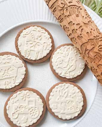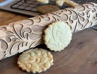 Together, their success is evident. With over 200 designs, Sweet Rolling Pins, available locally at Aspen Kitchens and Sparrow Hawk Gourmet Cookware, as well as across Colorado, caters to the heart hugs and smiles of every novice or expert baker, crafter or potter. Stacy’s favorite design: the Floral Swirl, which she attributes to being universal and something that can be used year-round. The other, Goofy Reindeer, “is perfect for little ones to help you,” and comes as both a rolling pin or a cookie cutter and stamp. Each rolling pin comes with its own recipe for Springerle Shortbread cookies, which can easily be modified as the seasons change, with dashes of pumpkin spice or cinnamon, and whose texture easily complements the rolling pins.