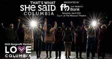 In the third annual production of That's What She Said Columbia, nine women from the community will take the stage and share their stories of success, joy, hardship, and overcoming barriers. This year's speakers are Ana Garcia, Ava Gunderson, Greta Gunderson, Shaunda Hamilton, Dr. Linda Helmick, Rochara Knight, Erica Pefferman, Valerie Shaw, & Ayako Tsuruta. Tickets go on sale February 1st. The event takes place Saturday, April 12th, at the Missouri Theater.