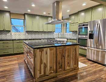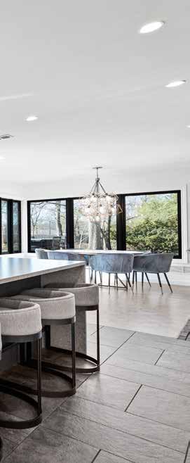 inspired Brad. Perhaps influenced by the squirrels, he incorporated his passion for animals and nature into the remodel, converting the old back entrance into a laundry room with a luxurious pet washing station and replacing windows facing the lake with sprawling patio doors.