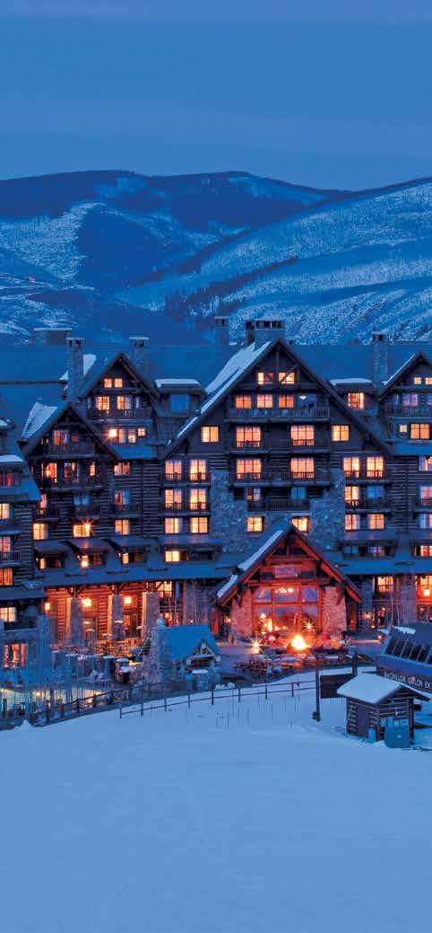 “FROM THE MOMENT YOU ARRIVE, YOU ARE ENVELOPED IN GRANDEUR AND COMFORT. THE RESORT’S ARCHITECTURE, INSPIRED BY CLASSIC MOUNTAIN LODGES, FEATURES TOWERING TIMBER BEAMS, WARM STONEWORK, AND EXPANSIVE WINDOWS THAT FRAME THE SURROUNDING SNOWDRAPED LANDSCAPE.”