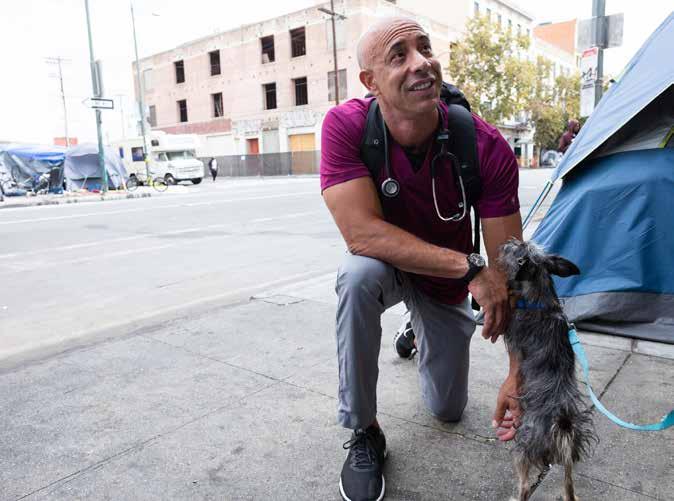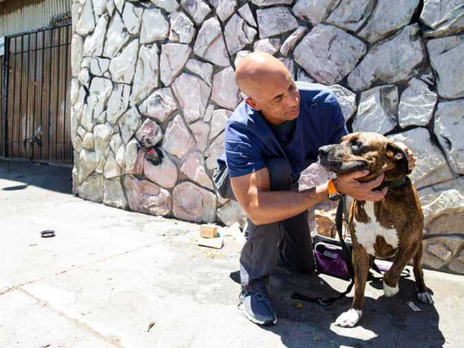 Compassion in action: Dr. Kwane examines a dog belonging to one of the unhoused.