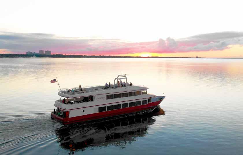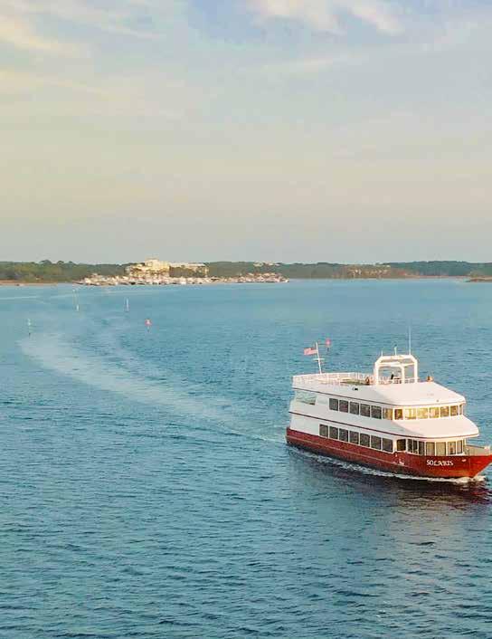 Dine. Dance. Cruise! Enjoy a threecourse dinner as you cruise along the Choctawhatchee Bay aboard the 125' SOLARIS Yacht. It’s not waterfront dining, it’s dining on the water.