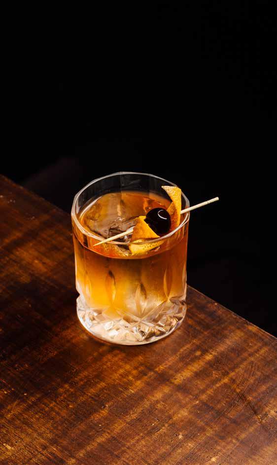 Step 2. Garnish with orange peel and a maraschino cherry—enjoy!