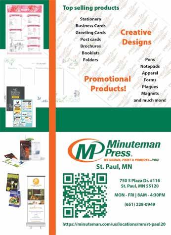 Are you looking to add a personal or festive touch to your personal or business holiday cards? Minuteman Press in Mendota Heights is the place to go! They are locally owned and all-women-operated, looking forward to servicing your design and printing needs. Minuteman Press offers a full range of printed items for your home or business needs, and what better time to try us out than this upcoming Holiday season? Visit https:// minuteman.com/us/locations/mn/ st-paul20/ for more information.