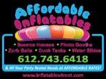 Affordable Inflatables is your source for quality inflatable attractions like bounce houses, water slides, obstacle courses, games, and more. We provide party rental delivery service to Eagan and the surrounding cities. Safety is our first priority, so all of our inflatables are cleaned and sanitized before every rental. Making your party and event reservations at affordableInflatablesllc.com is fast and easy with our new online reservations system.