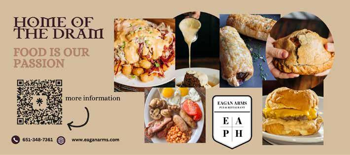 Eagan Arms Public House is your go-to destination for the best in British Isles—inspired comfort food and a wide variety of Irish whiskey, scotch, and bourbon. The menu features classics like fish and chips, shepherd's pie, and bangers and mash, as well as a variety of burgers, sandwiches, and appetizers. Stop by for Whiskey Wednesday and be sure to check out our weekend brunch offered on Saturdays and Sundays until 2 pm.