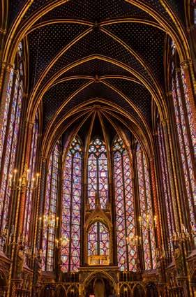 Another favorite is the former royal chapel of Sainte-Chappelle, situated on the famed Île de la Cité, also home to Notre-Dame Cathedral. Originally built in the 13th century to house relics of the Passion of Christ, today it still holds a total of 1,113 panels telling the story of the history of the world according to the Bible. These are some of the most magnificent stainedglass panels in Europe, and the chapel is considered a masterpiece of the High Gothic Style. Visiting this site always inspires a reverence for spiritual beliefs.