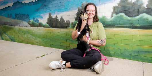 At 17 years old, Brenna the dog has seen more than her fair share of sunrises, and for her human, Sarah Alvarado, every one of them is a gift. “Brenna has kidney disease and she’s in her golden years, so life looks a little different now,” Sarah says. That means a specialized diet, accommodations for incontinence, a rugfree home for easier mobility, and carefully managed spaces to keep her safe. Though her hearing and sight have faded, her joy hasn’t—she still loves soaking up the sun and riding in her very own doggy backpack. “The routines can be demanding, but it’s all worth it to give her a good quality of life,” Sarah says. “Caring for her at this stage in her life allows me to understand our senior patients and the tough decisions their families face.”