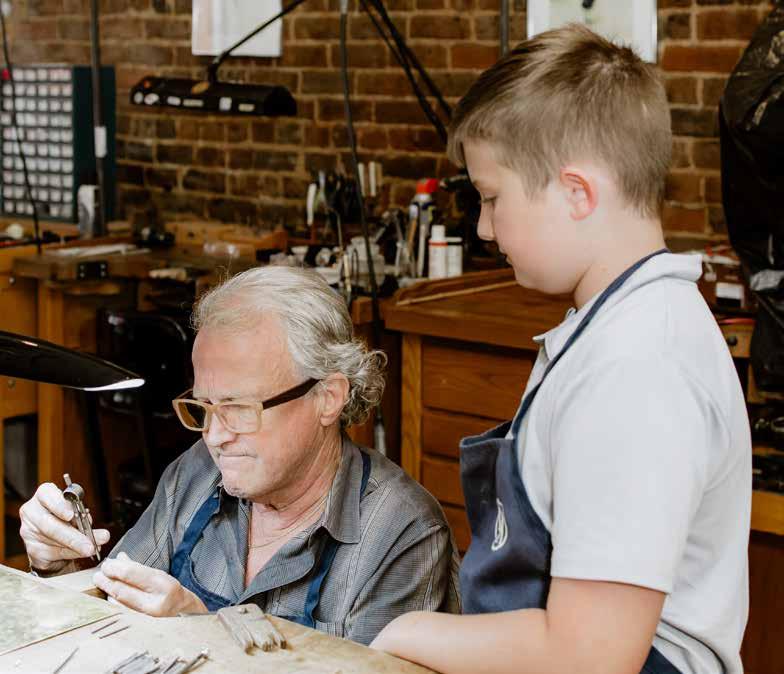 enthusiastically said, “Getting to play with the torch!” Under his grandfather’s seasoned instruction, Leonard has learned how to use the torch safely and effectively, a big deal for someone so young. He’s also learned how to pull metal properly, engrave intricate designs, and saw off excess metal from castings — all skills that bring the process of turning raw materials into beautiful jewelry.