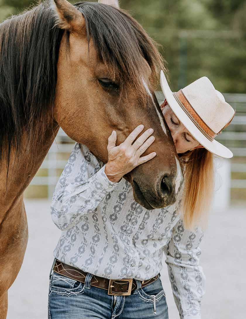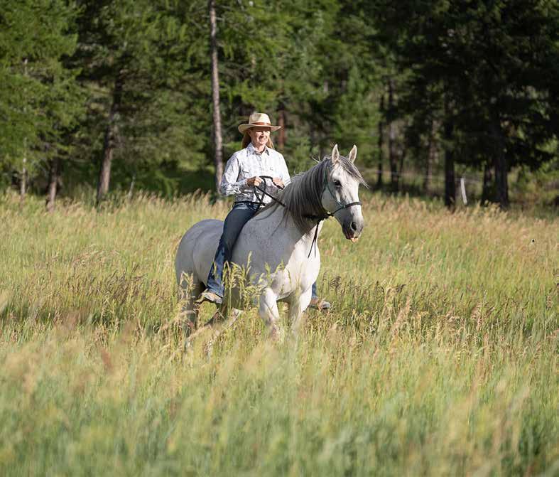 She’s helped countless people with their horses, whether it’s gentling or saddle training them, or even taking them back when someone else didn’t correctly estimate the commitment or investment needed to work with these animals. Today, she reflects on the adventure she’s taken herself on, and the many horses that led the way, especially Mr. Knightly. “He’s such a good boy. He’s so light, you can ride him bridleless and he knows me and I know him.”
