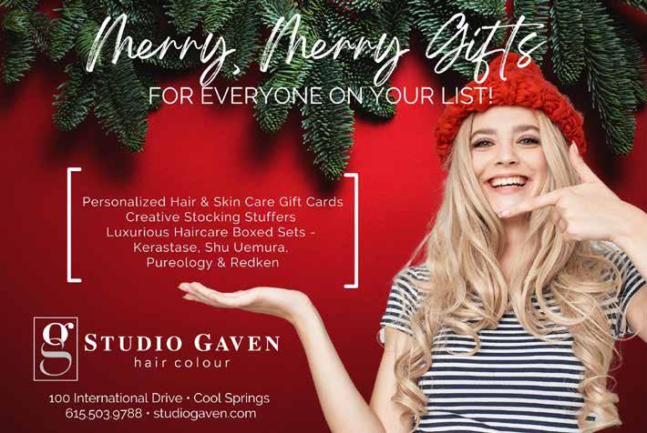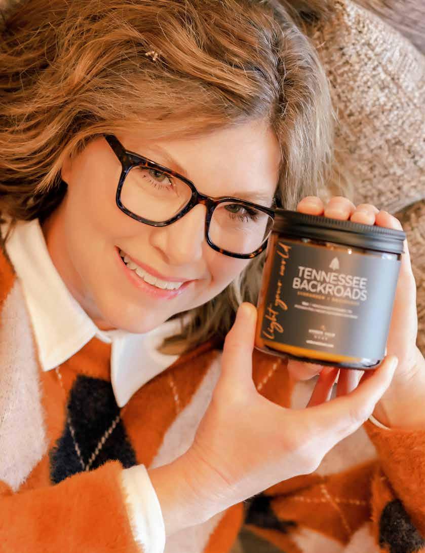 Beloved locally, though gaining popularity nation wide, is a candle simply called “Franklin.” During devel opment, Michele spent time strolling Main Street noting every scent she experienced while wandering. “Franklin is a love for our downtown,” said Michele. “I went to dif ferent shops, took in the leathers, the cedar floors and the sweets. I tried to take all of those notes and stuff them in a candle.” The candles caught the attention of two area hotels, leading Michele to design the signature candle scents for both The Harpeth Hotel in downtown Franklin and Holston House in Nashville.