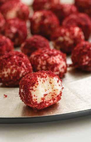 4. Roll balls in red velvet cake crumbs until fully coated, then return to prepared baking sheet. Refrigerate until ready to serve.