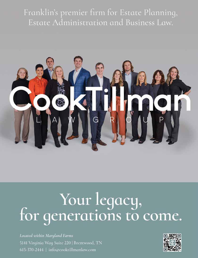 Our November issue is dedicated to stories like giv ing back with the Haley Sue Foundation and recognizing the people and organizations that make Franklin such a special place, like cover stars Jana Kramer and Karen Kingsbury. Jana is starring in The Christmas Ring, a new holiday movie based on Karen's book that was filmed right here in Franklin.
