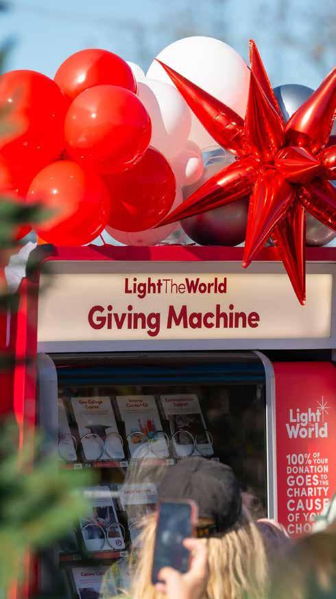Sponsored by The Church of Jesus Christ of Latter-day Saints, the Giving Machine is part of the Light the World campaign. It provides an instant act of service for people interested in helping those in their community and around the world during the holiday season. Organizers state that 100% of all donations go directly to the participating charities.