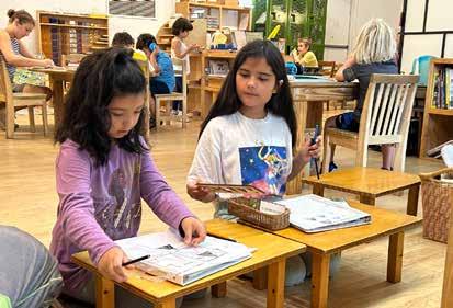 The elementary learning environment (grades 1-6) fosters independence and focus through individual or small group work, natural lighting, soft colors, and organized, accessible materials. New students quickly adapt to Montessori’s hands-on, interest-driven teaching. The classroom is a vibrant, happy community where students explore, create, and reflect, with teachers offering support and introducing new material as needed. Clear expectations are balanced with openended opportunities, promoting both comfort and inspiration for learning.