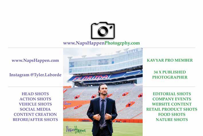 Louisiana-born and a proud UF graduate, Tyler Laborde is a combat Navy veteran, devoted family man, and the creative force behind Naps Happen. By day, he’s a skilled wildlife trapper; by passion, a talented photographer and content creator. Tyler’s photography captures raw, authentic moments—blending nature, people, and purpose. From the swamps to the studio, his work reflects a life lived boldly. Explore his world at www.NapsHappen.com and on Instagram @Tyler.Laborde. www.NapsHappenPhotography.com Scan