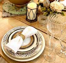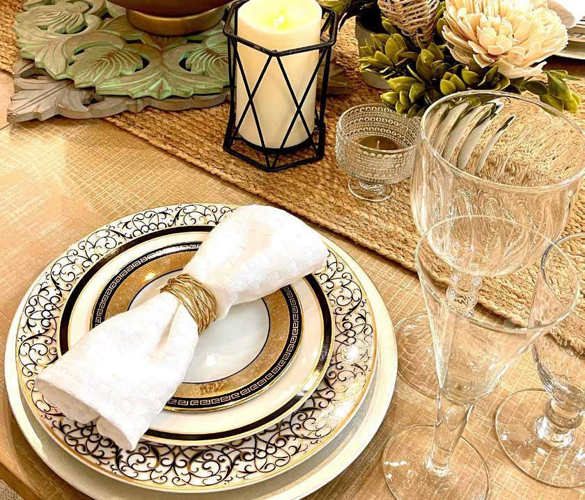 Enjoy holiday dining at its best with the help of Walker Furniture. The dining table is from the Universal Furniture Modern Farmhouse collection. This table setting shows different styles that are blended together to make a beautiful table setting. We mixed together farmhouse with traditional and rustic styles. Don’t be afraid to be adventurous with your decorating style.