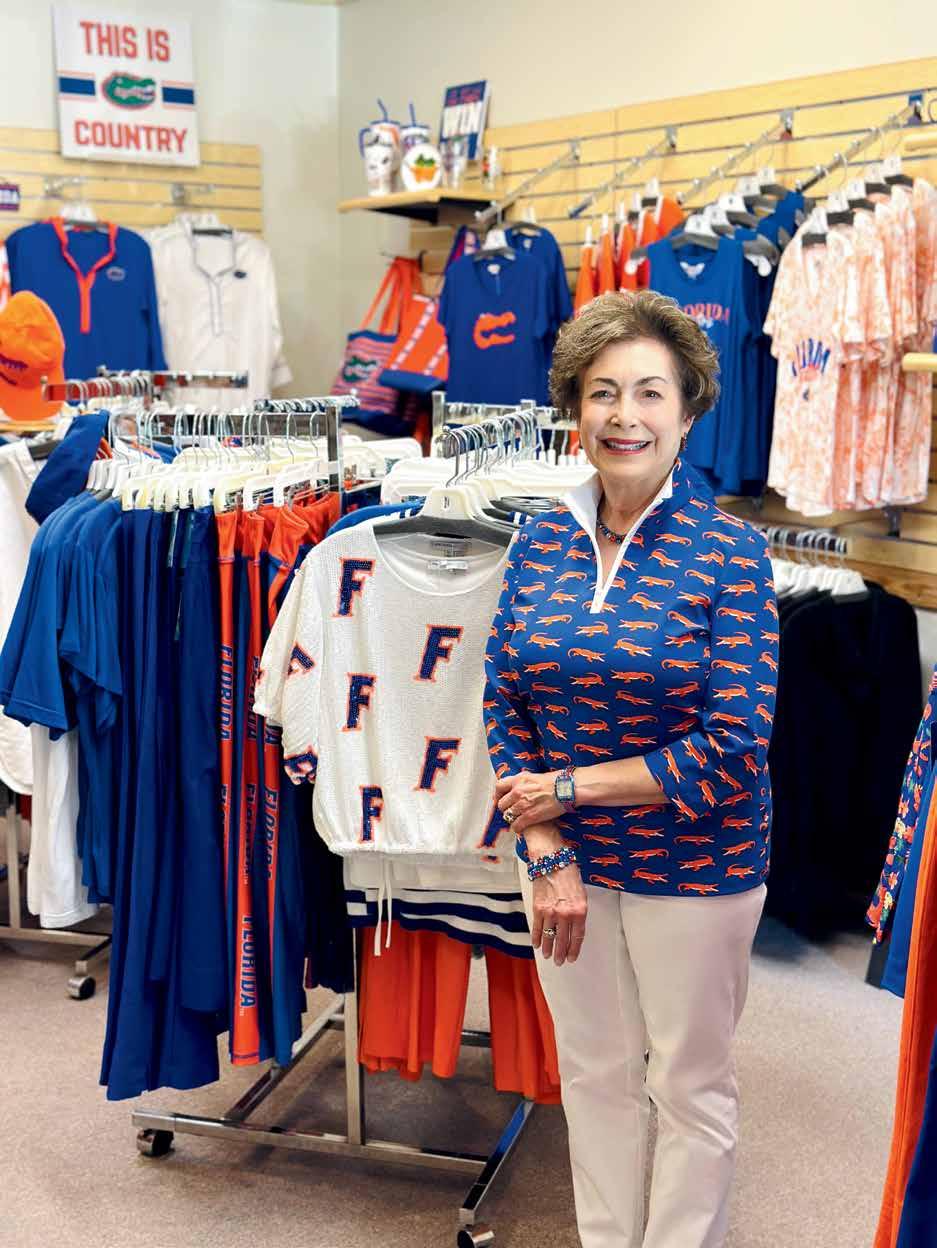 I opened my first store in November 1989 as Ilene’s For Fashion in Millhopper Square, moved to the Shoppes at Thornebrook in 2003, and in 2018 opened my current larger store rebranded as Ilene’s Gator Store, facing NW 43rd Street in the front of Thornebrook. We are a fashion boutique catering to the Gator Nation with exclusive quality Gator apparel for women, men, children, plus jewelry, accessories, and gifts. I think back to my family’s earlier stores, and realize we have always catered to the needs of UF, and I am honored to continue that tradition.