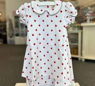 1 Maude’s Peter Pan Collar Dress/ This darling dress featuring Egerton Apples with Nantucket Navy is a must-have for the first day of school vibes. 2 Assorted Backpacks and Pencil Pouches/ With a brand-new backpack packed full of essentials and adorable pencil pouches adorned with playful designs, the anticipation of heading back to school feels like embarking on a colorful adventure just waiting to unfold! 3 Prim & Proper Polos, Shorts and Bows/ These perfectly preppy polos and shorts are a staple for the school year. With their classic style and comfortable fit, they make dressing for school both easy and stylish. 4 ABC Apron Dress/ Learning the ABCs is way more fun in this Pima Cotton Annie Apron Dress featuring Nantucket Navy with ABC Applique.