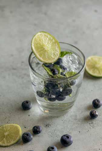 • In a large pitcher, add the blueberries, lime slices, and basil leaves.