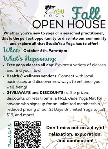 This 'flow and grow together' gathering features a BUTI Yoga pop-up. Register online at StudioYouYoga. com or through the StudioYou Yoga app. There is a $10 drop-in rate for non-members; free for members.