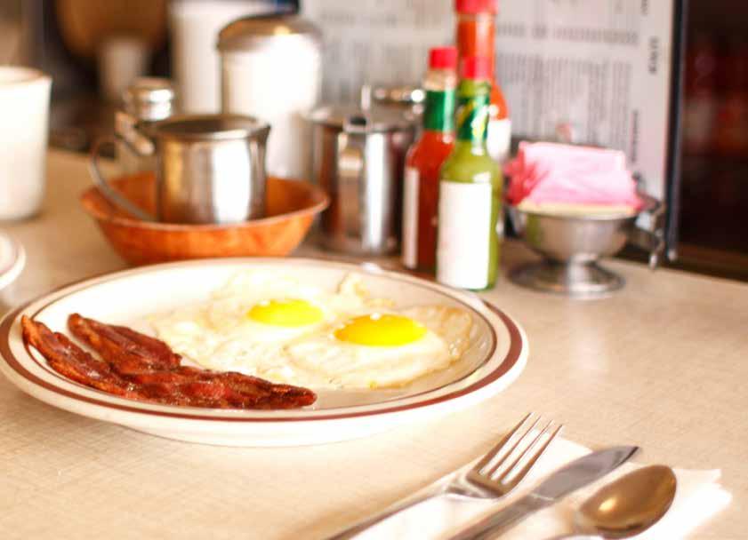 In quintessentially American fashion, diners typically serve sought-after 'greasy spoon' cuisine such as pancakes, eggs in all sorts of ways, omelets, hamburgers, French fries, onion rings, club sandwiches, chili, meatloaf, steak, hotdogs, sausage, coffee, hand-blended milkshakes, malts, pies, cake, ice cream and 'Blue Plate Specials.'
