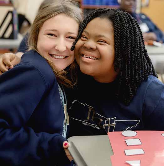 Given its academic reputation, one would think that Pope Prep style would revolve around scholarship and achievement. However, that assumption is incorrect. At Pope Prep, style means“Ourinclusion.styleiswelcoming and inclusive,” says Jennifer Dye, school director of innovation. “There is a place and a space for all students, regardless of their interests or abilities.” This philosophy of inclusion is embodied in all aspects of life at Pope Prep and is pivotal to the school’s mission to develop students who are strong in mind, body, character and spirit, and that encourages them to live their lives in ser vice to others. “We offer many opportunities for students to find their places in our community,” says Jennifer. “Our students aren’t POPE PREP STUDENTS HAVE THE OPPORTUNITY TO PARTICIPATE IN A VARIETY OF ACTIVITIES. Pope Prep incorporates team work to prepare students for life.