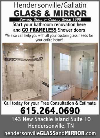 SHOWERFRAMELESSDOORS When Quality Matters BEAUTY » FUNCTION » VALUE SHOWROOM: 103 Tennessee Way Hendersonville, Tennessee 37075 (615) nashvilleshowers.com431-5070 17| CITYLIFESTYLE.COM/HENDERSONVILLESEPTEMBER 2022