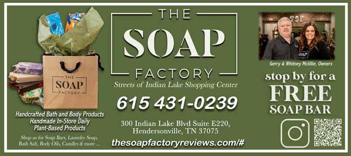 Four Salt Sessions for $65 in September Enjoy 393 East Main Street, Hendersonville, TN 37075 615-824-7258 (SALT) • www.saltmedspa.com Massage • Facials • HydraFacial Waxing Services • Salt Sessions Infrared Sauna • Couples Massage 29| CITYLIFESTYLE.COM/HENDERSONVILLESEPTEMBER 2022