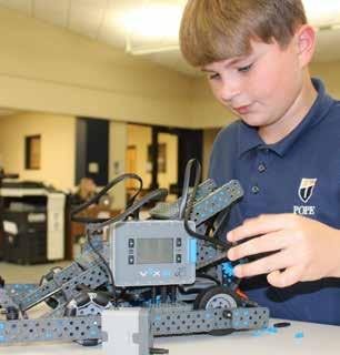 just academics, athletes or artists; they are all of these things, and much more. For example, we have students who are on our robot ics team, but who also run cross country. All of our students have the opportunity to explore their interests and engage in different ways of thinking and doing.” One of the best examples of Pope Prep style in action is an inno vative initiative called the Hand-In-Hand Options (HIHO) pro gram. This program was developed to help students with learning challenges succeed in the school environment.
