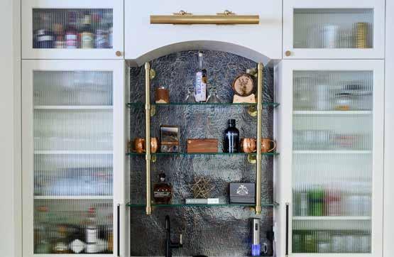 It’s all a part of Cutter’s balanced approach to design. Trends come and go. She aims to create classic yet relevant and contemporary spaces for her clients. In addition to incorporating arches, Cutter says, “Classic shaker-style cabinetry can be updated by varying the width and depth of the trim. Thin shaker cabinet door styles provide a fresh spin on the traditional door style. Incorporating tambour brings in character and adds a tactile and visual sensory experience to the space.”