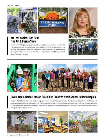 Art Fest Naples: 16th Best Fine Art & Design Show Sunshine Artist Magazine, a publication for art/craft show exhibitors, awarded Art Fest Naples with the 16th spot on the national Best Fine Art & Design Shows 2019 list. “We are thankful to the gifted artists who exhibit their work at our show and to everyone who works to make this show a success,” says Taire Malloy, Art Fest Naples' executive director.