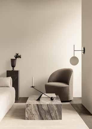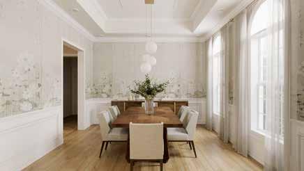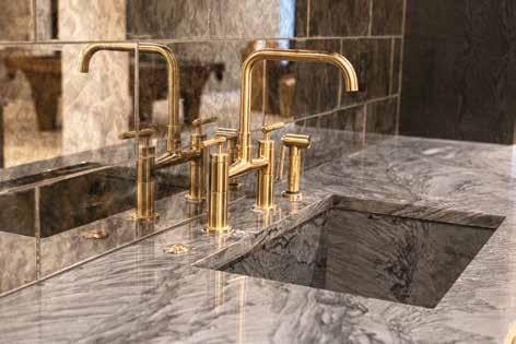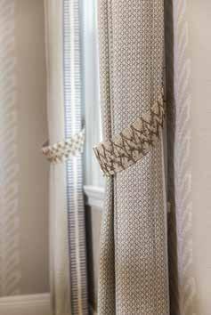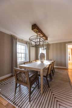 • “You can’t go wrong with fresh flowers,” Hannah says, “but keep bouquets low to not interfere with conversation flowing. For fall, I like richer, jewel-toned florals to mix and match and keep whimsical. I vary glass vases with bur - nished brass for warm fall vibes.”