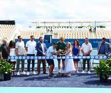 A ribbon cutting was held at the transformed Lindner Family Tennis Center before the Cincinnati Open. Owners Ben and Kelly Navarro were joined by Beemok Sports & Entertainment President and Tournament Director Bob Moran, COO Jansen Dell, City of Mason Mayor Diana Nelson, Warren County Commissioner Dave Young, Ohio State Representative Adam Mathews, tennis legends Andre Agassi, Bob and Mike Bryan, Sloane Stephens and Stefanie Graf. Defending champion Jannik Sinner helped cut the ribbon. CincinnatiOpen.com