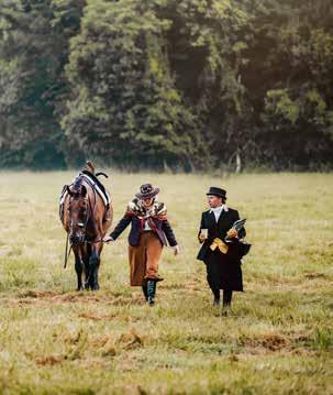 No hunt is complete without the traditional tastes and toasts that fuel the riders before, during and after the event. Before each hunt, participants enjoy a Stirrup Cup, a tipple served in silver cups, often shaped like animals. Throughout some hunts, riders and spectators are fed from the Tallyho Wagon, a trailer of treats that follows the action. Tucked in the hay, you’ll find champagne
