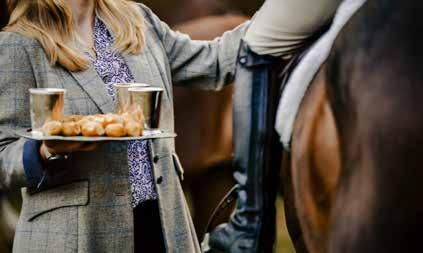 on ice and light bites, refreshments to enjoy and share with riders as they make chase through the field. Following each hunt, members hold Bring to Shares, an equestrian version of a potluck, often breakfast foods.